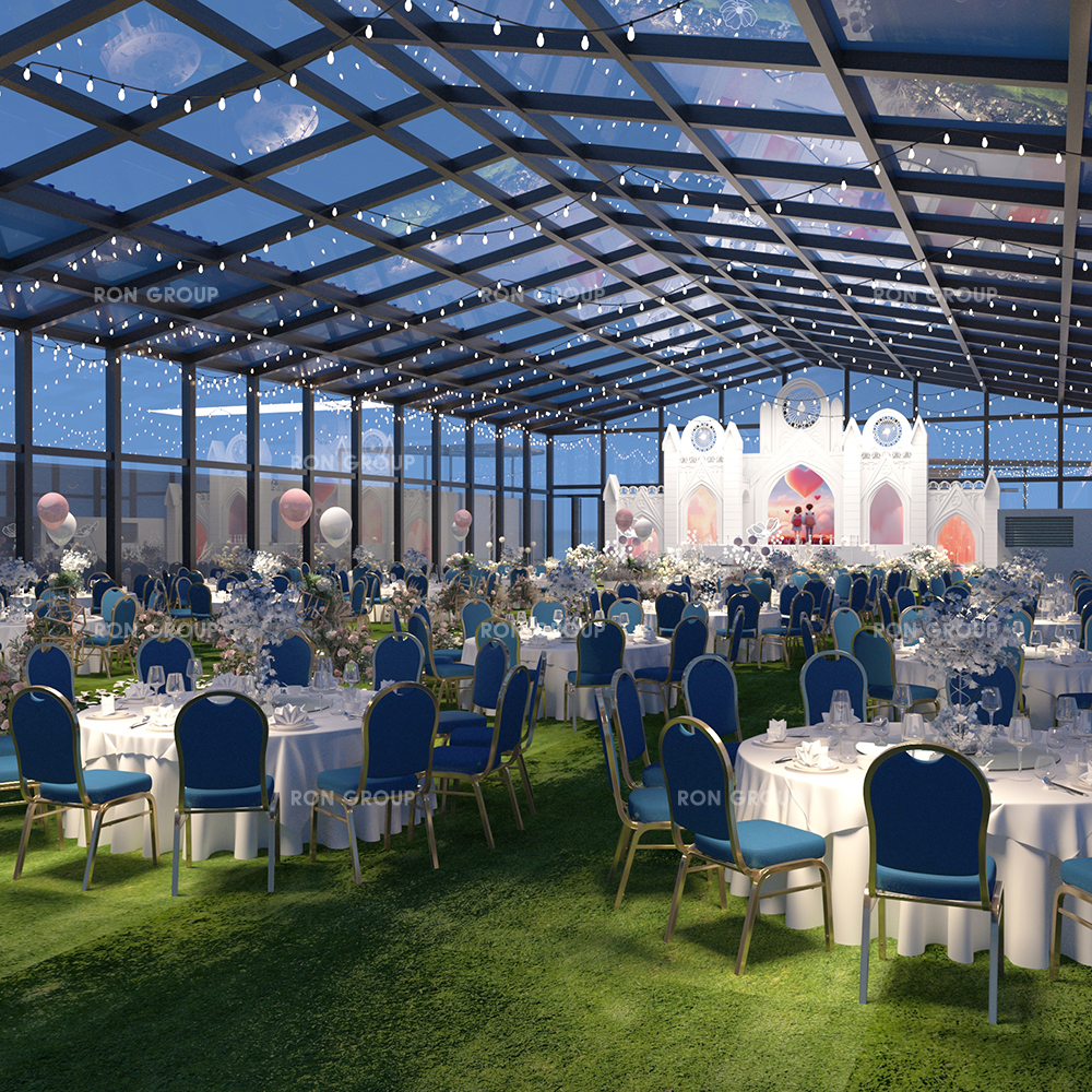 In the realm of high-end event design, furniture serves as the foundational architecture of the guest experience. Our latest 3D conceptual renderings demonstrate a sophisticated integration of furniture within a clear-span glass structure, where the choice of seating and tables dictates the entire spatial narrative. For 2026, the global wedding market is shifting away from generic setups toward personality-driven aesthetics that prioritize both visual impact and tactile luxury.