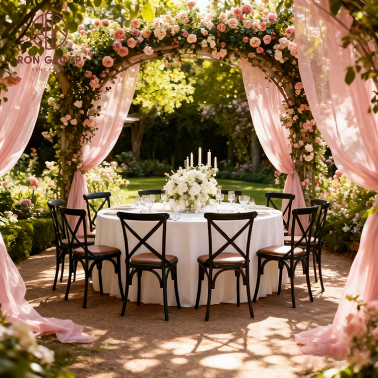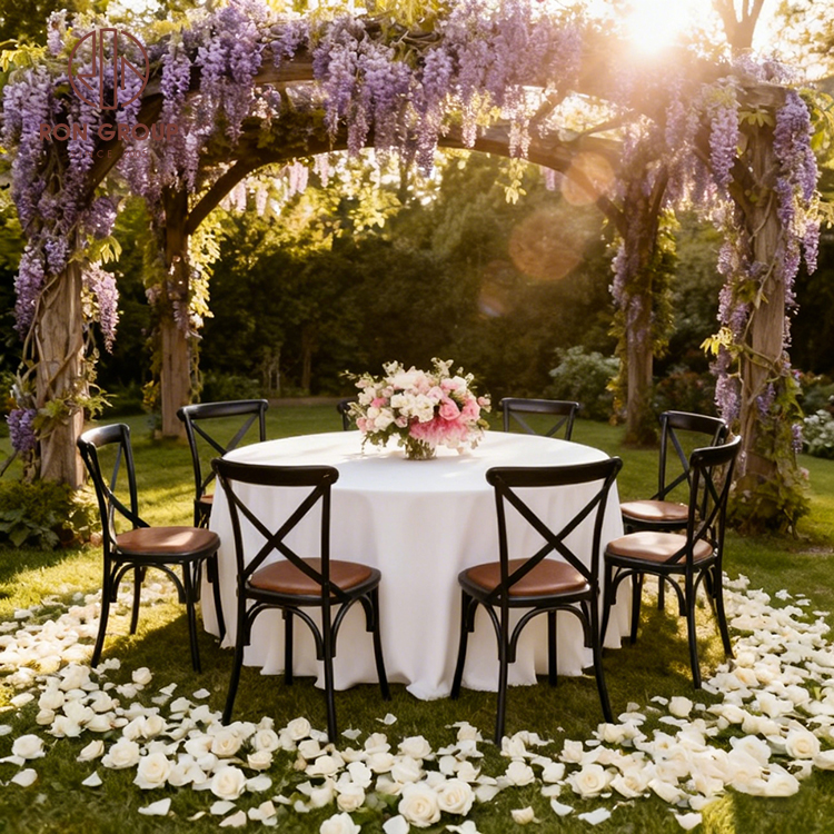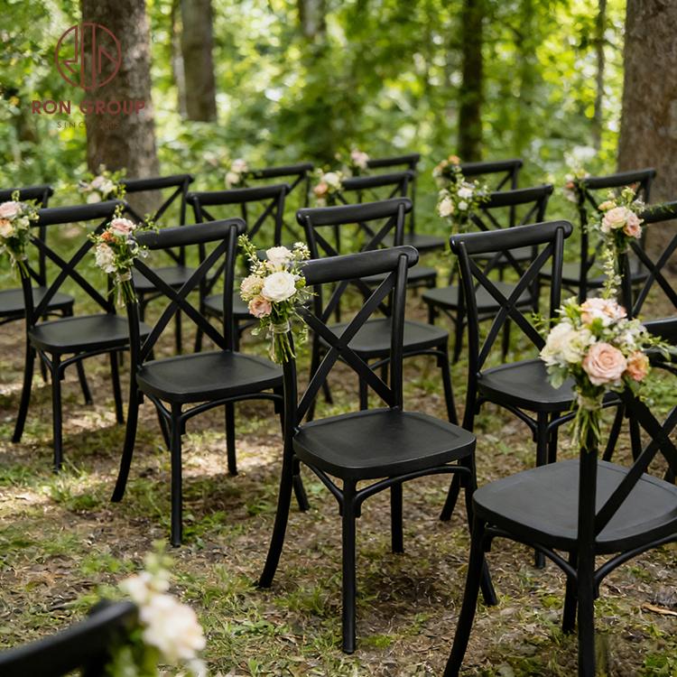 Weatherproof Metal and Resin Cross Back Chairs for Outdoor Weddings and Indoor Banquets