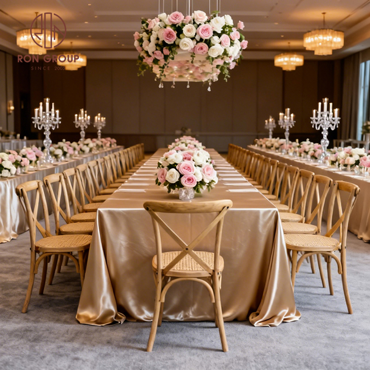 Elegant Oak & Resin Cross Back Chairs for High-End Wedding Venues