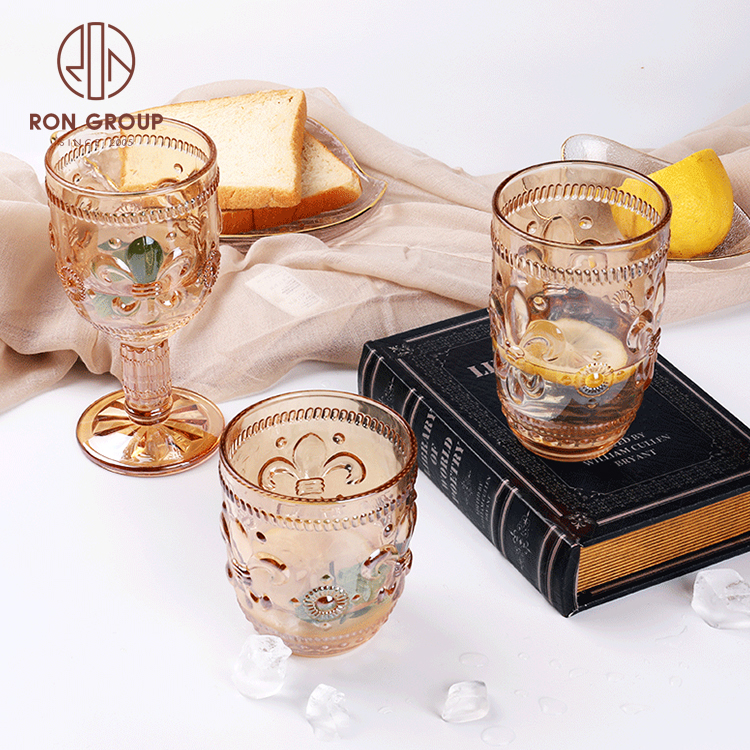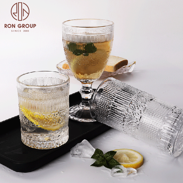 Vintage Embossed Beer Goblets & Water Glasses — Frosted & Clear Designs for Wedding Decoration