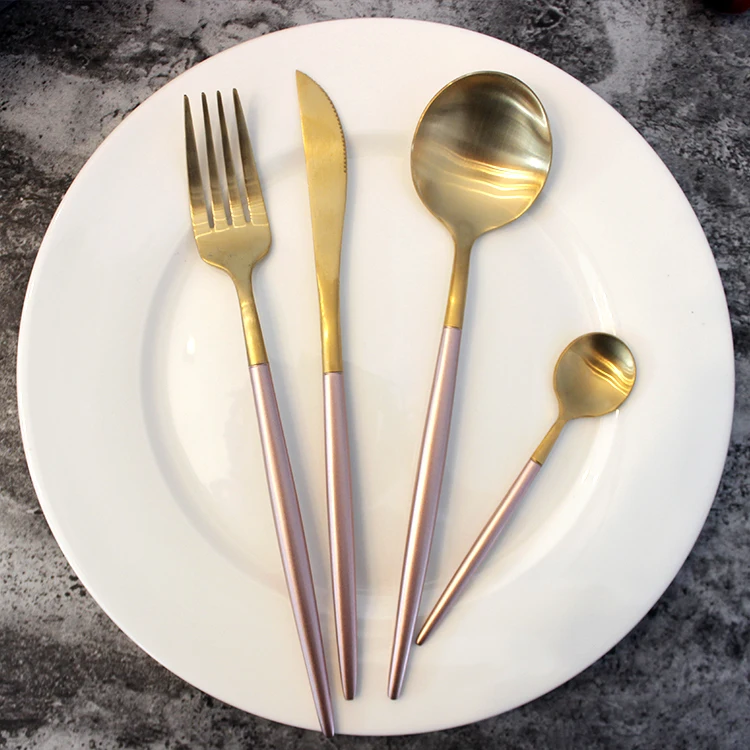 | Product Name | Factory direct sale salad custom matte cutlery pink flatware for wedding knife stainless steel spoon fork gold silverware set |
