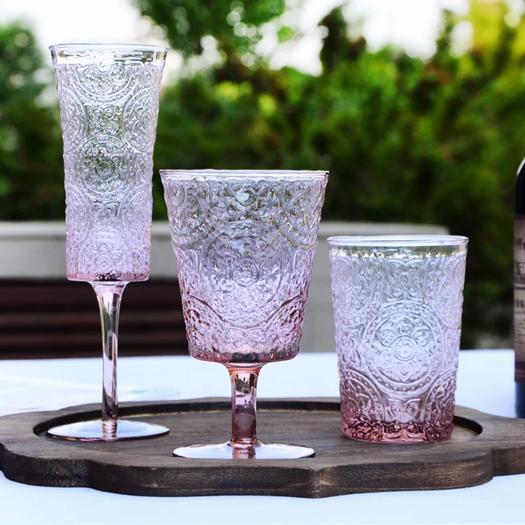 | Product Name | Factory Directly Low Price Wedding Party Glassware Sets Crystal Lead Free Blue Embossed Drinking Cups Water Stemless Wine Glass |