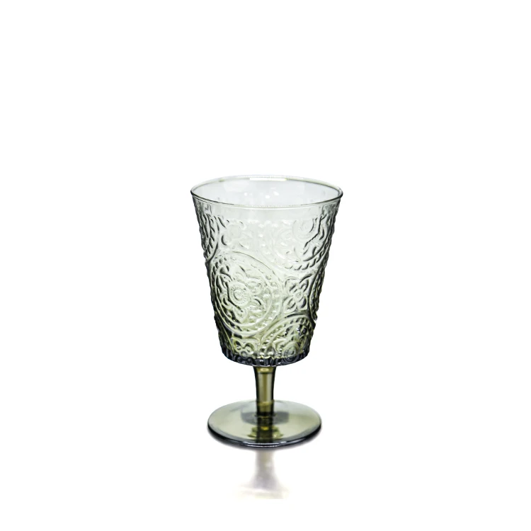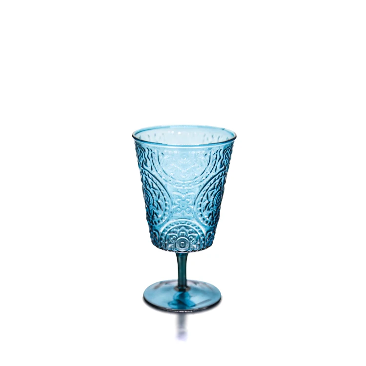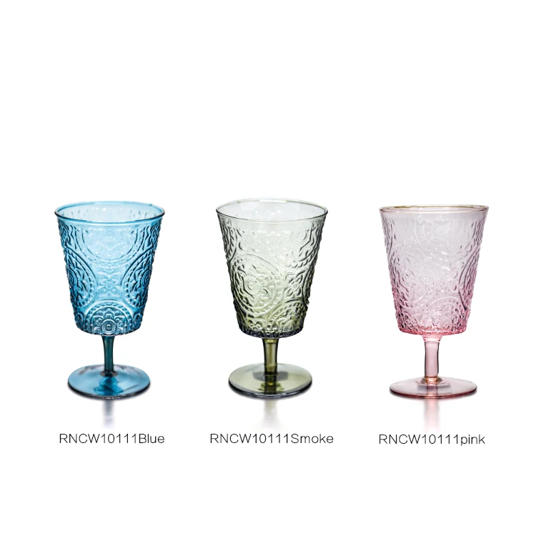 | Product Name | Cheap Price Wholesale Wedding Banquet Party Glassware Set Not Fragile Vintage Colorful Crystal Embossed Glass Cup Wine Glasses |