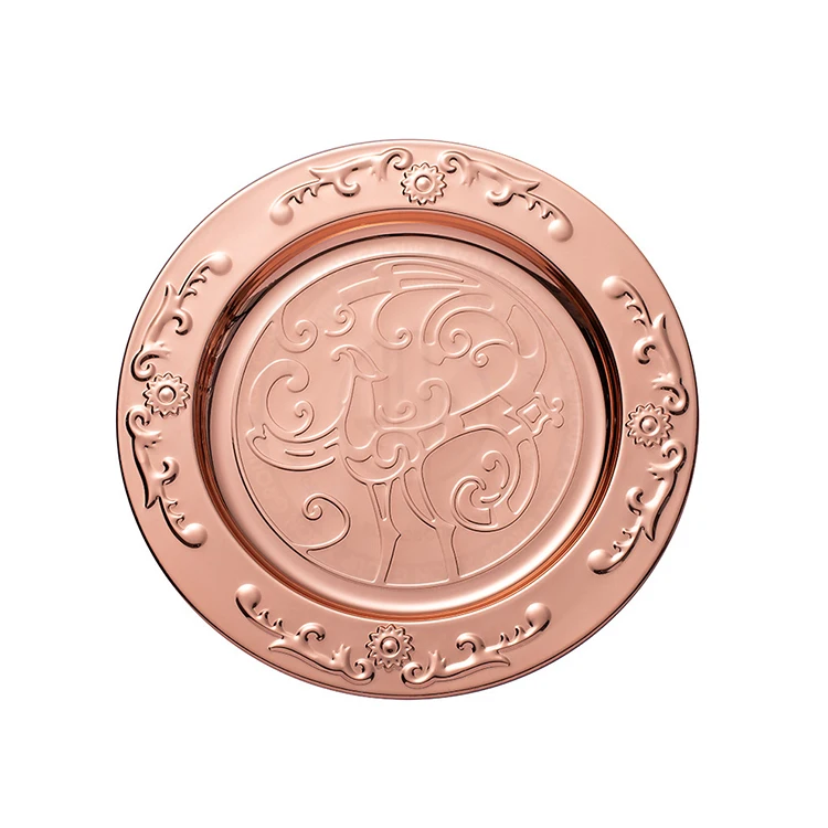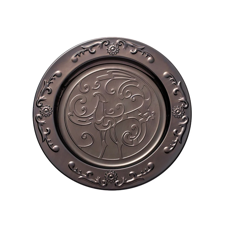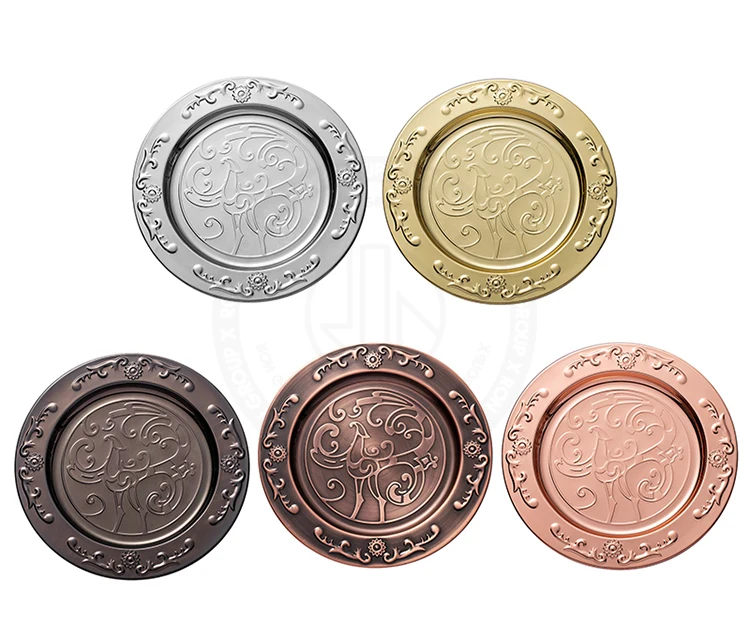 | Product Name | Wholesale Wedding Banquet Hotel Dishware Gold Silver Bronze Round Food Serving Tray Metal Mirror Charger Stainless Steel Plates |