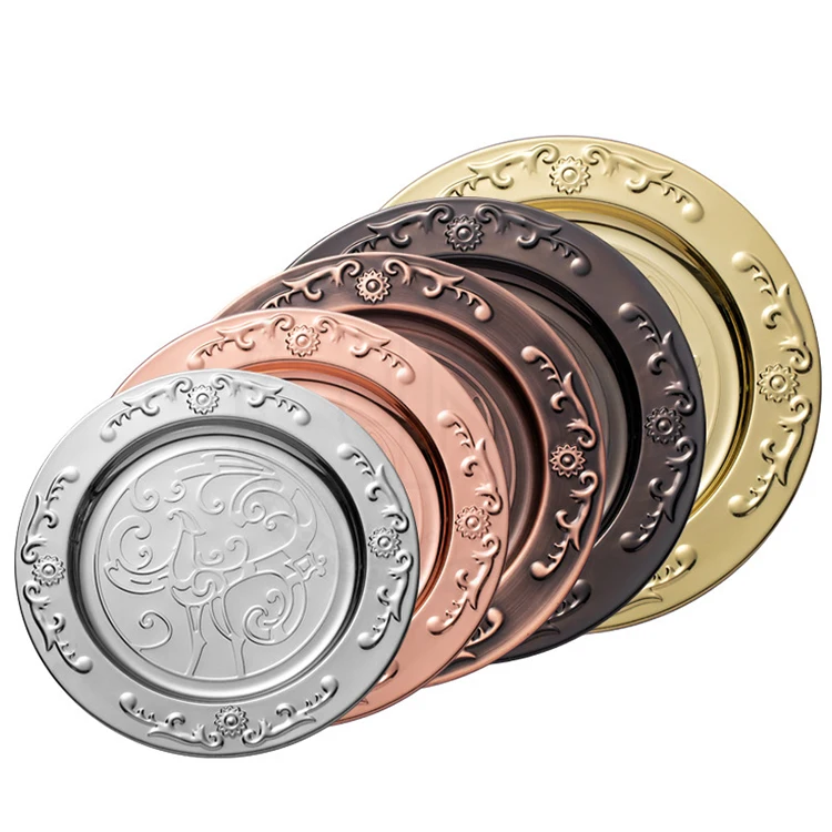 Product Name: Gold Silver Round Food Serving Metal Charger Stainless Steel Plates