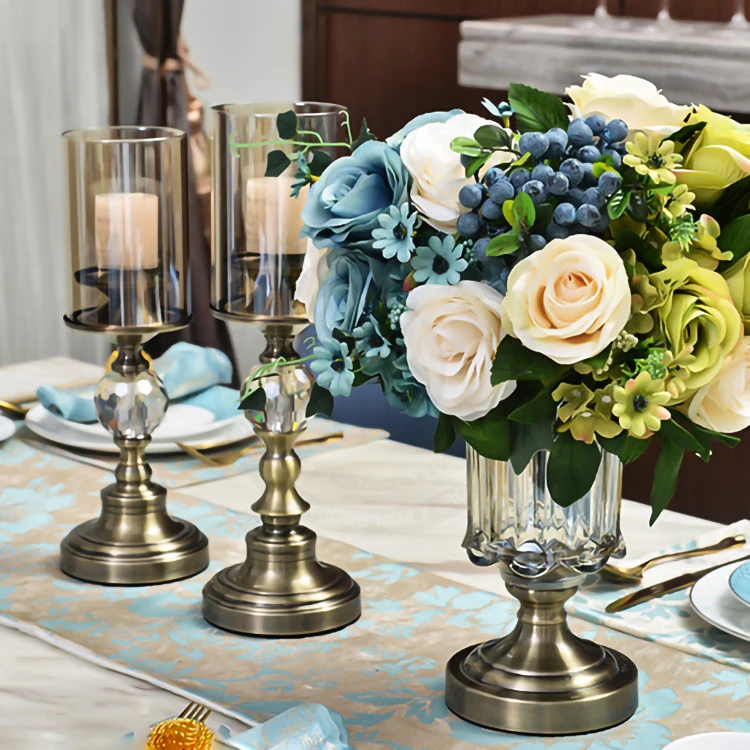 Product Name: Wedding Dining Table Vintage Glass Metal Luxury Candle Holders