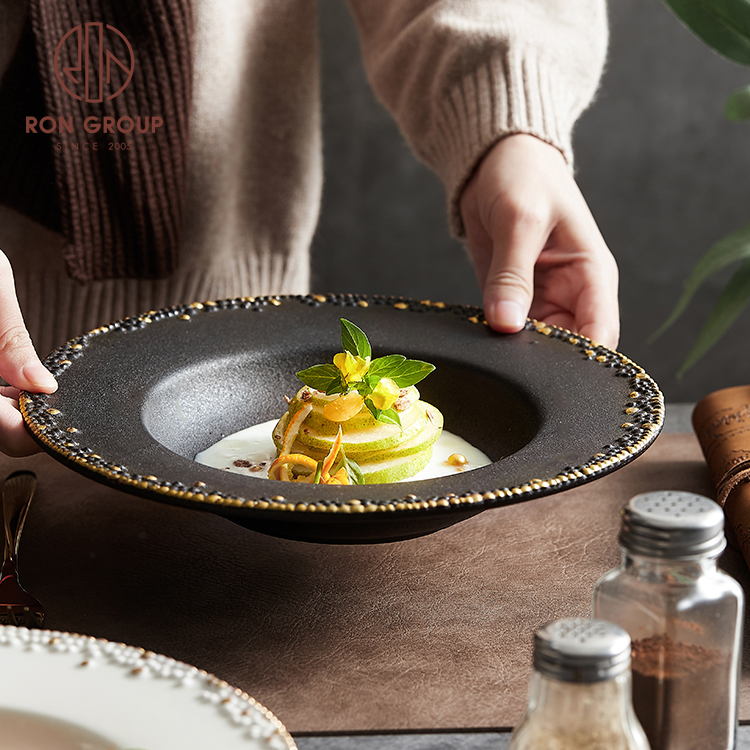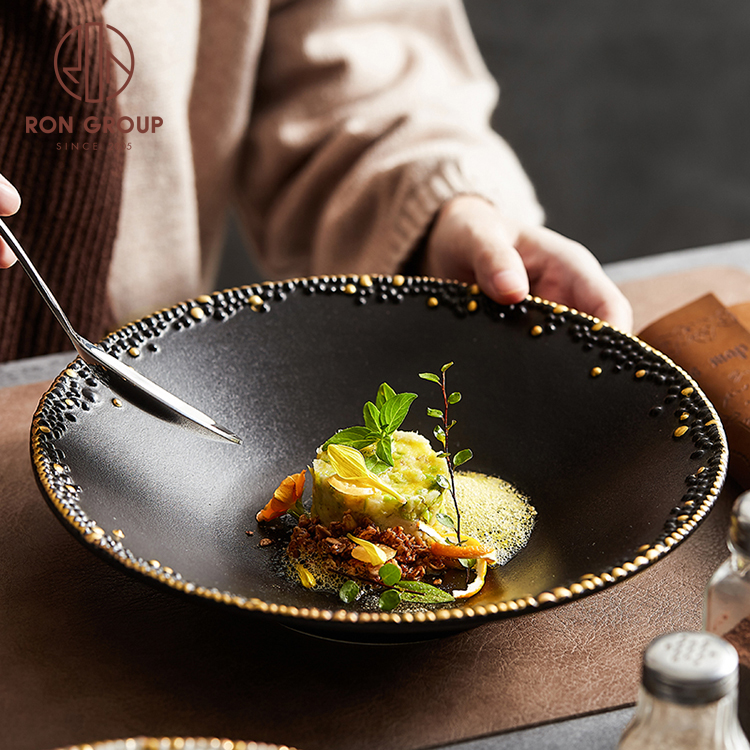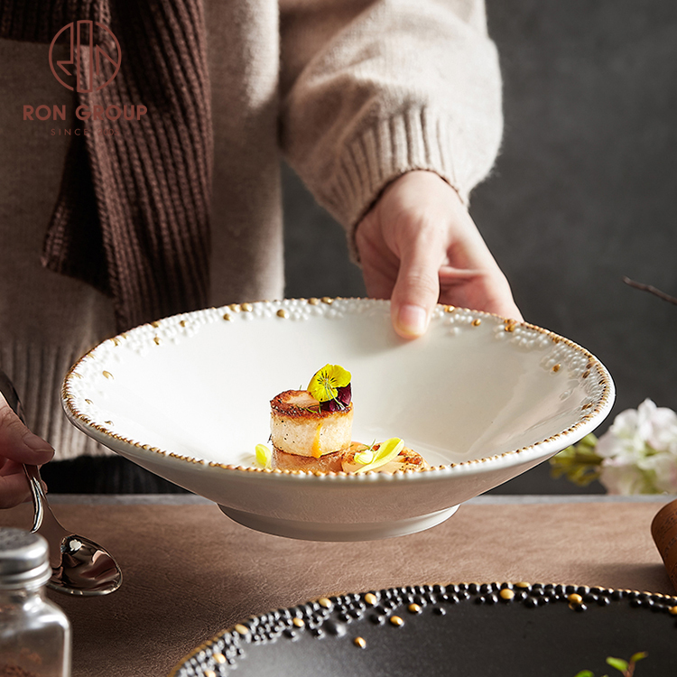 | Product Name | High quality nordic round hat shape bowl deep pasta dinning ceramic gold rim large serving bowl for wedding |
