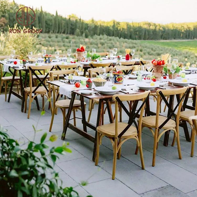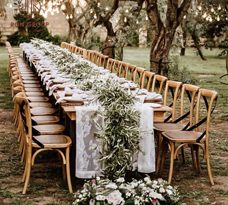 Rustic Solid Wood & PP Cross Back Chairs for Professional Wedding Venues