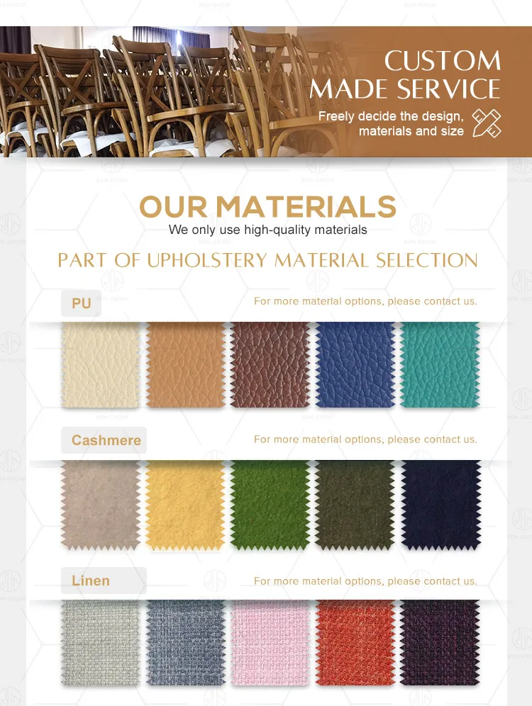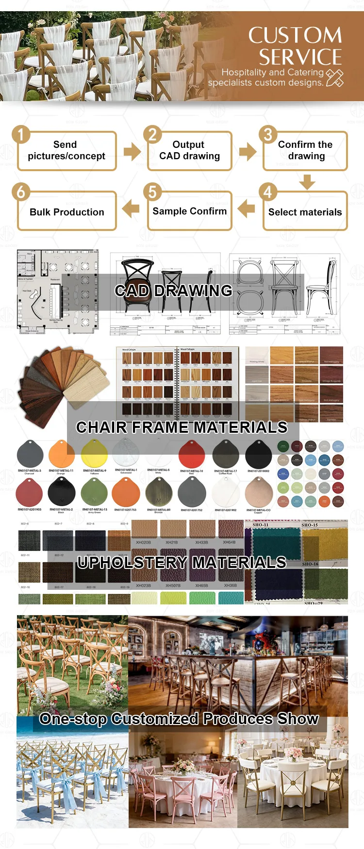Superior Comfort: Wood wedding chairs padded with leather cushions for long-lasting comfort.