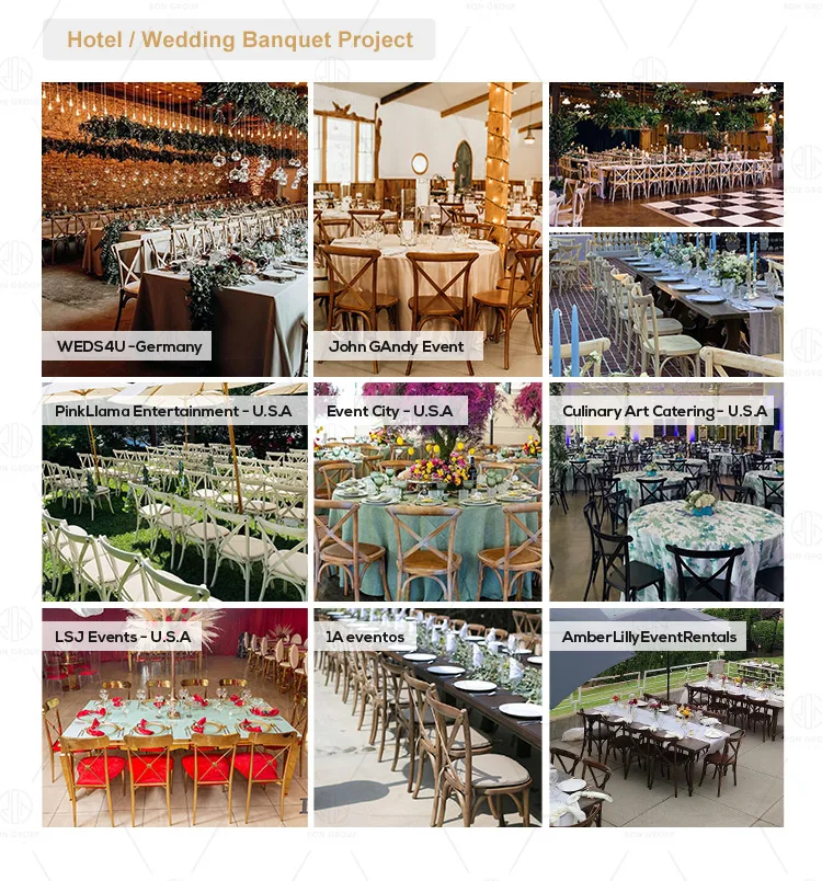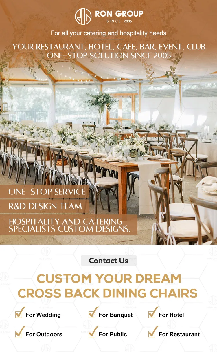 Rustic Solid Wood Cross Back Chairs for Outdoor Wedding & Banquet Events