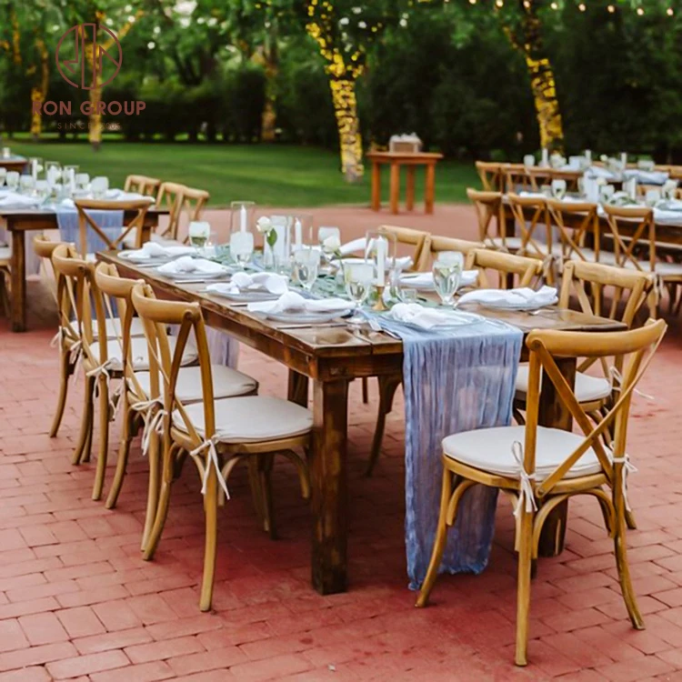 Rustic Solid Oak Cross Back Chairs for Wedding Events & Outdoor Banquets