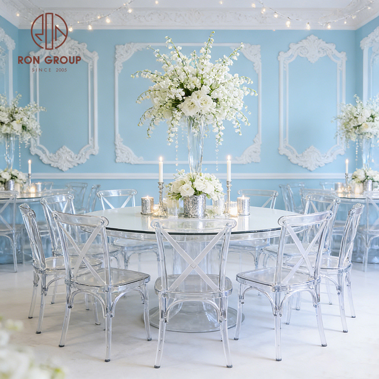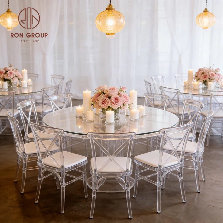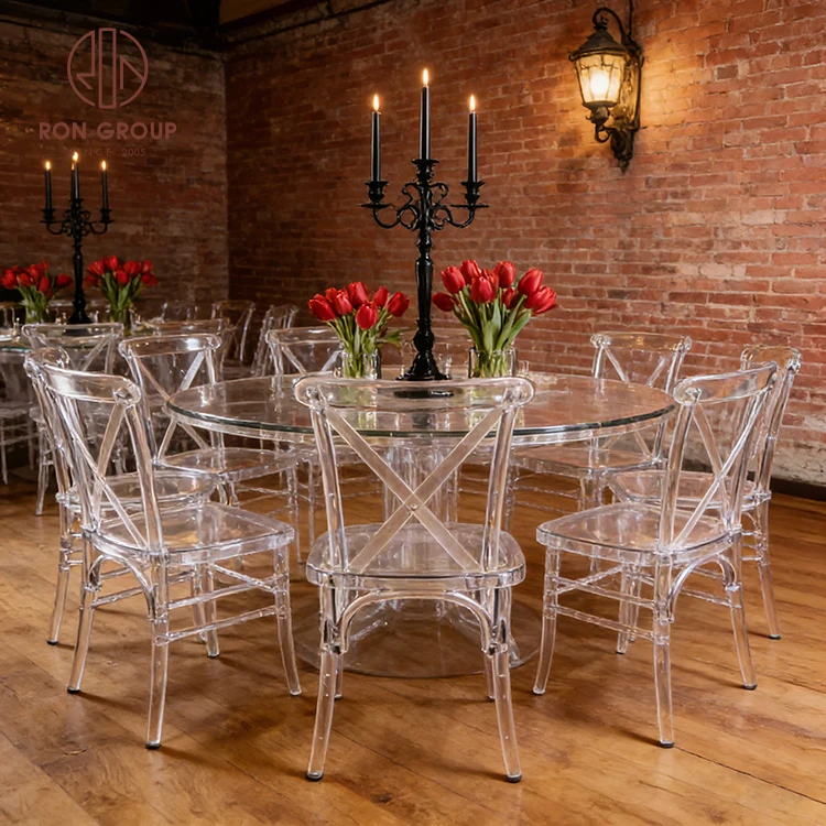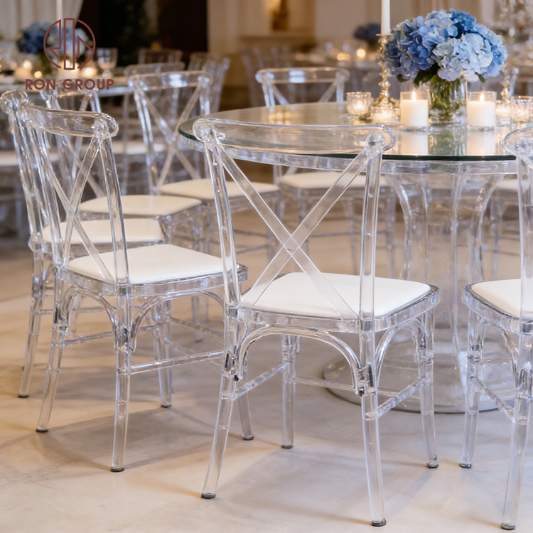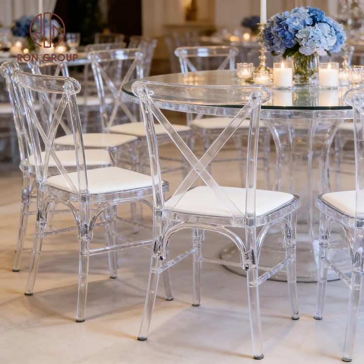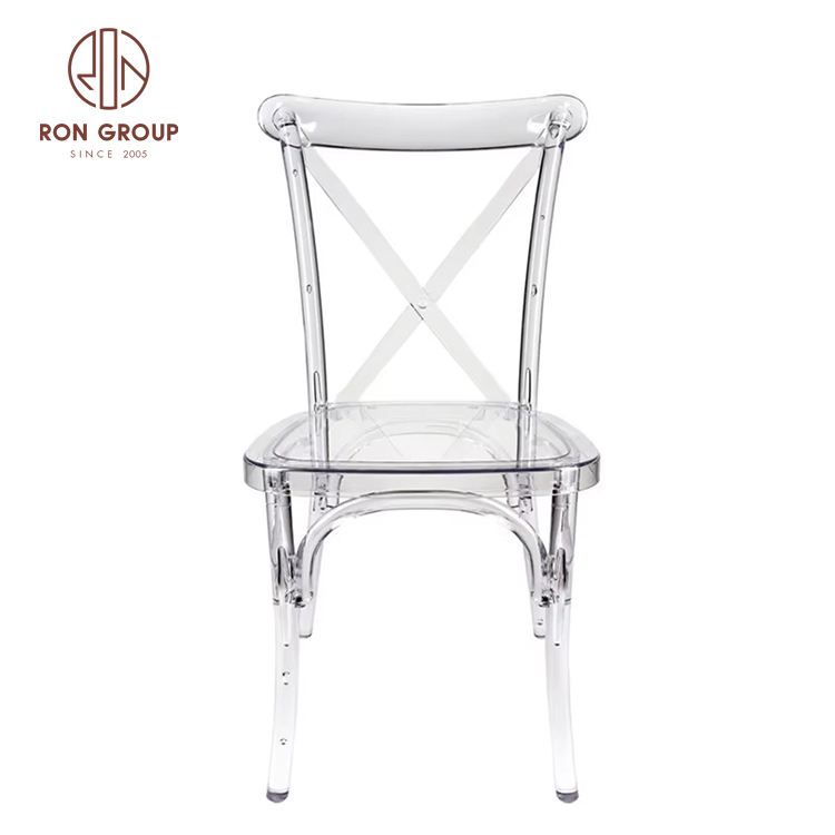 Modern Clear Acrylic Cross Back Wedding Chair with Stackable Resin Design