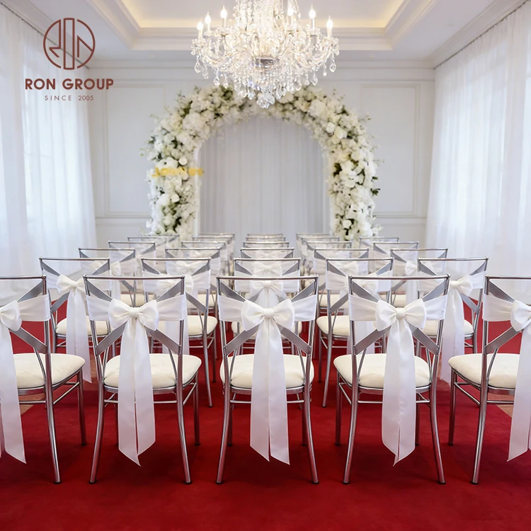 Modern Silver Stainless Steel Cross Back Wedding Chair with Cream Velvet Cushion