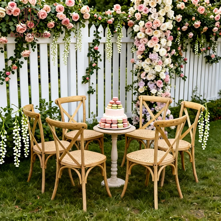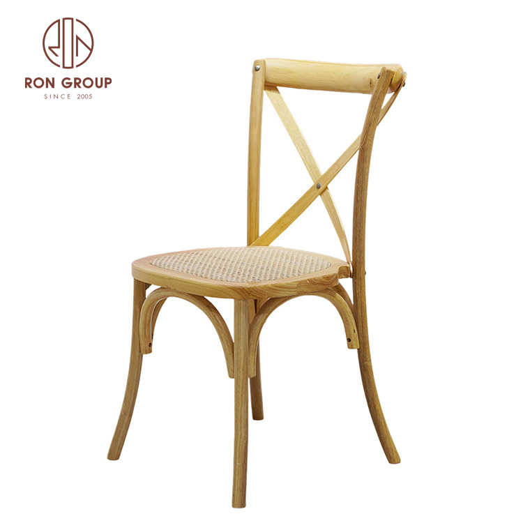 Rustic Wooden and Metal Cross Back Chairs with Rattan Seat for Wedding Events