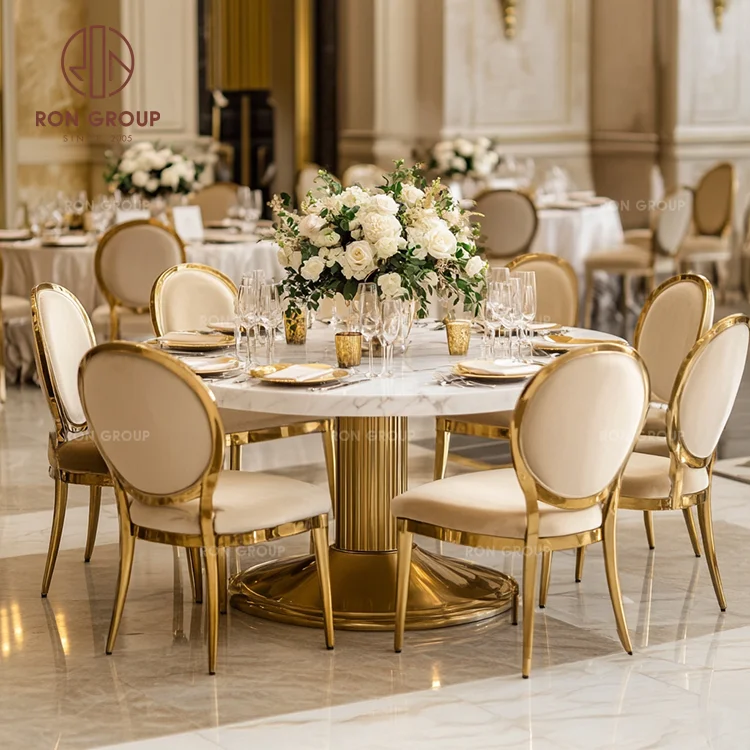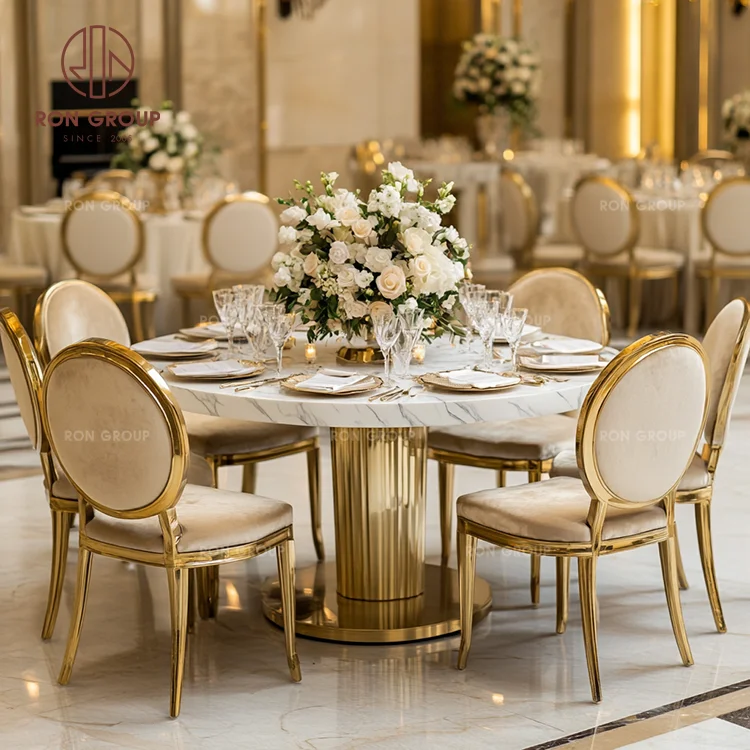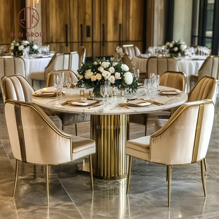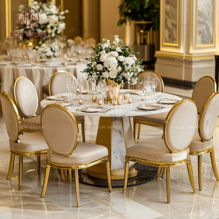 Gold Round Back Velvet Wedding Banquet Chairs And Table Sets