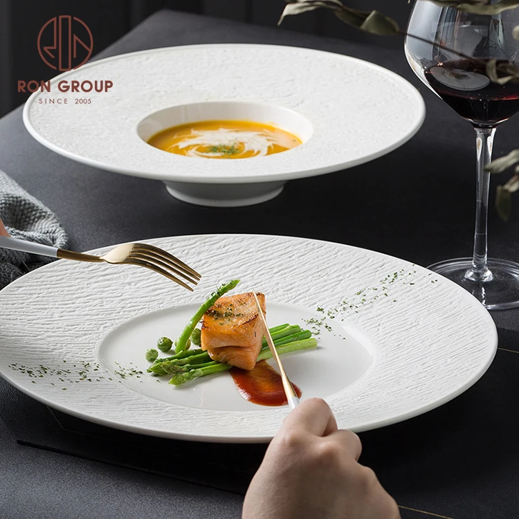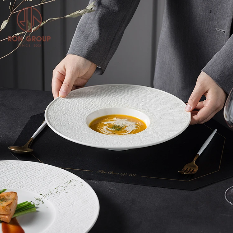 | Product Name | Luxury White Wedding Dinnerware Dishware Porcelain Salad Pasta Soup Deep Plates Party Banquet Embossed Straw Hat Ceramic Plate |