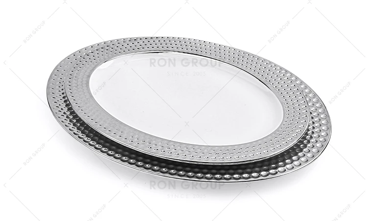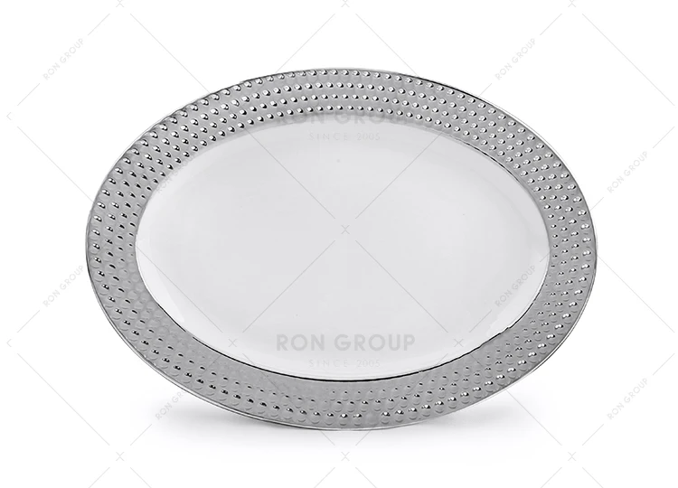 | Product Name | Hot Sale Luxury High Quality Wedding Party Vintage Silver Plating Oval Tableware Dinnerware Sets Dishware Ceramic Plates |