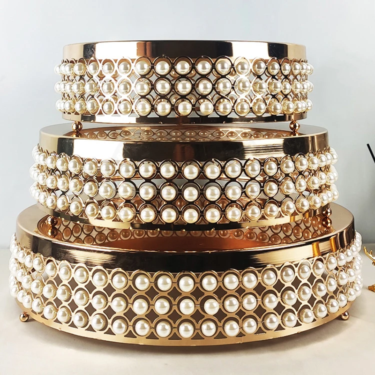 | Product Name | Luxury Crystal Gold Mirror Round Metal 3 Tier Cupcake Tray Pearl Cake Stand for Wedding Birthday Party Decoration |
